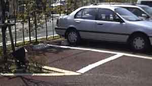 000322 名古屋市で。スズキのワゴンRでもしっかりはみ出していました。