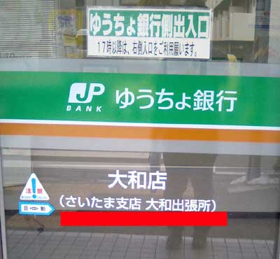 080405 神奈川県の大和市の大和郵便局です。そのゆうちょ銀行のATMの入り口です。どう考えてもここがさいたまのはずがない。